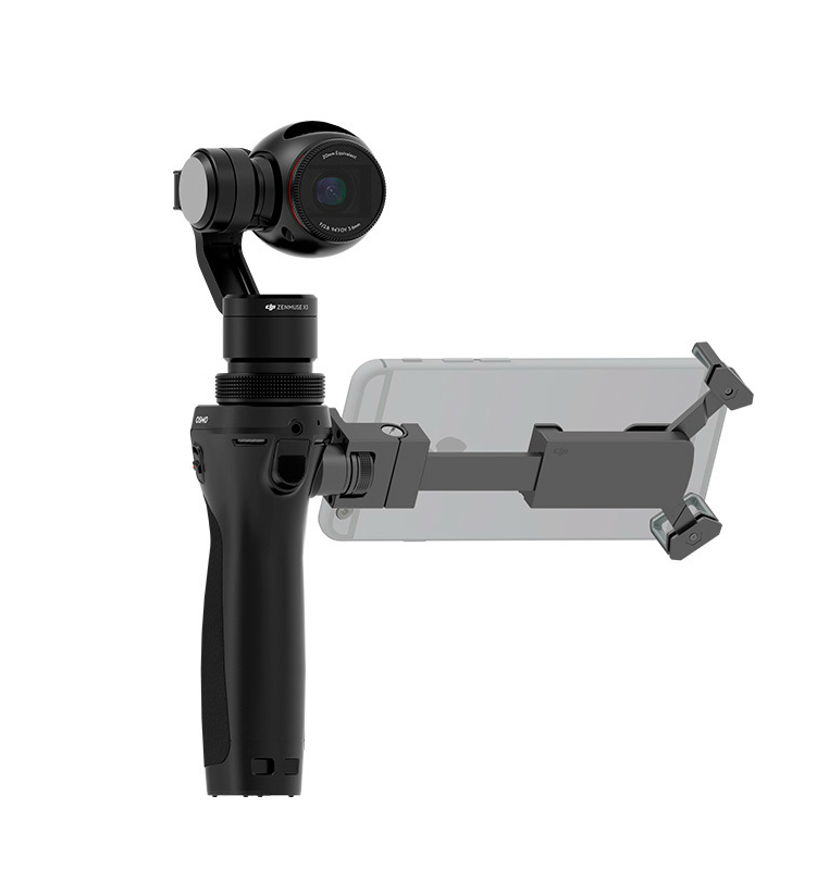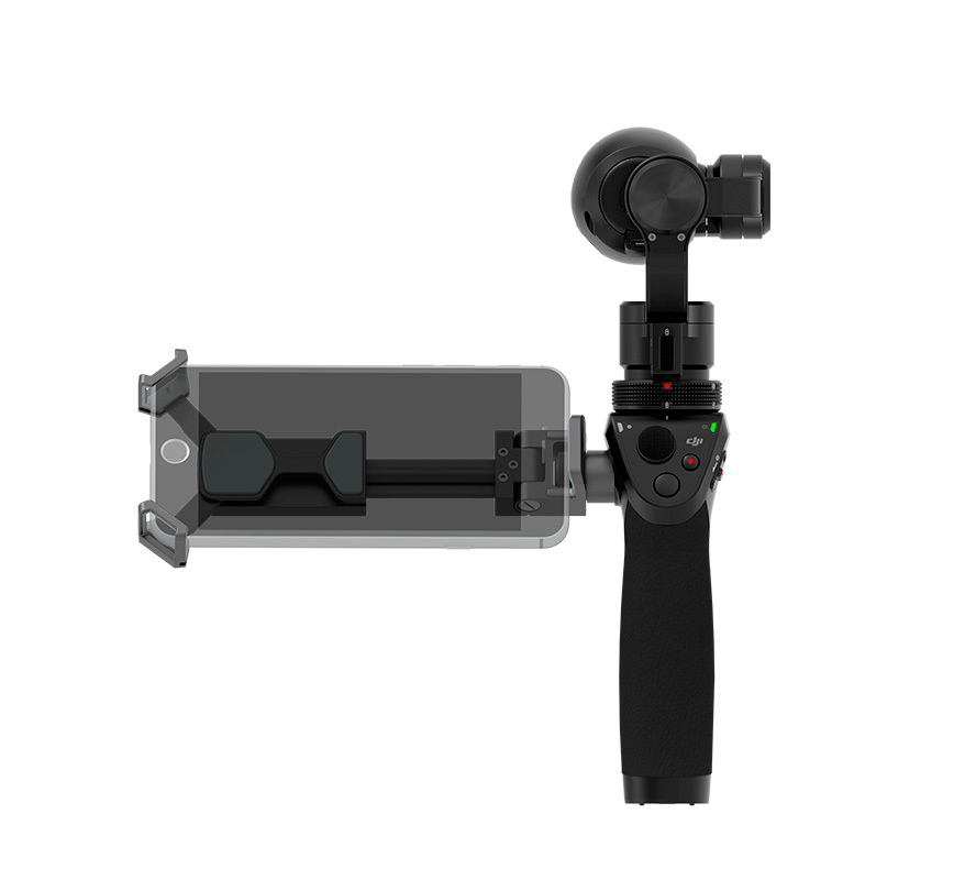 Держатель смартфона для ручного стедикама DJI Osmo. Используется для установки на стабилизатор мобильного телефона и использования последнего в качестве видоискателя, транслирующего онлайн HD видео и обеспечивающего доступ к настройкам камеры посредством приложения DJI GO app.